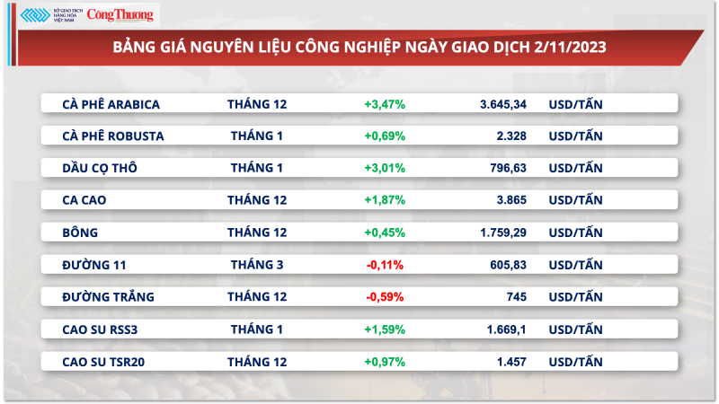 Cùng với đó, chỉ số Dollar Index giảm 0,71% sau khi Cục Dự trữ Liên bang Mỹ (FED) quyết định duy trì mức lãi suất 5,25 - 5,5% tại cuộc họp mới nhất, khiến dòng tiền chuyển từ các tài sản trú ẩn sang các thị trường khác như chứng khoán hay hàng hóa. Việc Dollar Index giảm sâu cũng khiến nông dân Brazil hạn chế bán hàng.