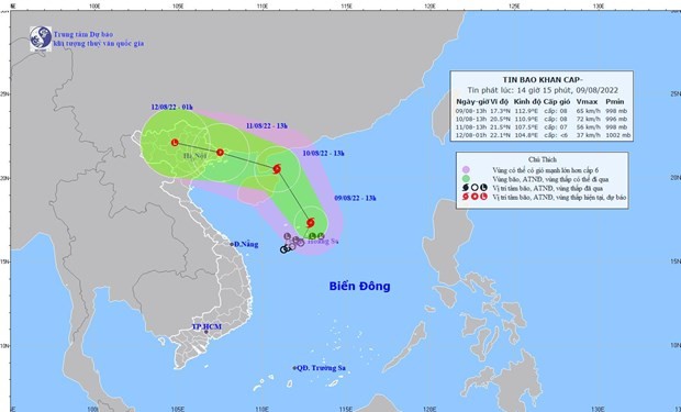 Đến 13 giờ ngày 10/8, vị trí tâm bão ở trên vùng biển phía Đông bán đảo Lôi Châu (Trung Quốc), cách Móng Cái (Quảng Ninh) khoảng 350 km về phía Đông Đông Nam. Sức gió mạnh nhất vùng gần tâm bão mạnh cấp 8 (62-74 km/giờ), giật cấp 10.