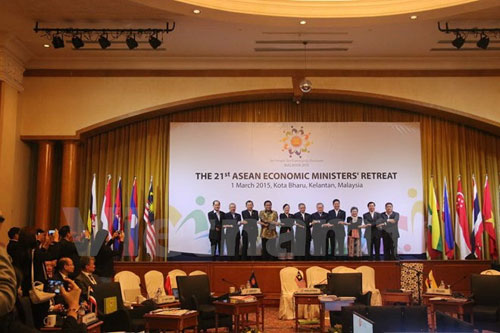 Các Bộ trưởng Kinh tế ASEAN tại Hội nghị. (Ảnh: Kim Dung/Vietnam+)