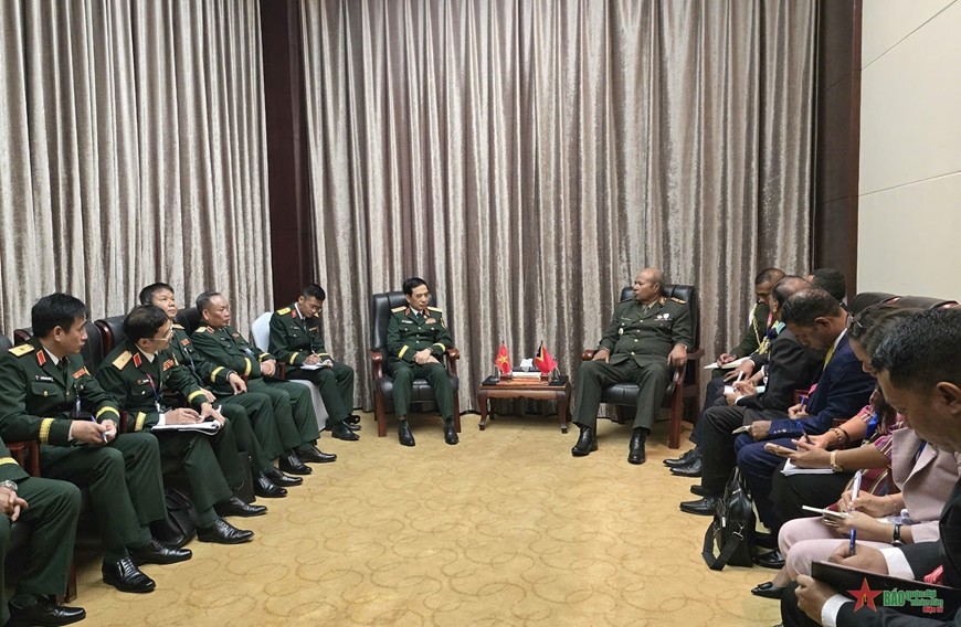 | Đại tướng Phan Văn Giang gặp song phương với Trung tướng Domingos Raul, Tư lệnh Lực lượng quốc phòng Timor-Leste. - Ảnh: QĐND |
