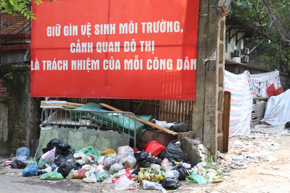 Bà Lan - người dân sinh sống ở đây cho biết: "Mới chiều hôm trước chúng tôi dọn dẹp sạch sẽ tới sáng hôm sau rác lại chất cao như núi, tràn ra khỏi đường. Con ngõ này nhiều cây cối lại có mương nước thải nên những người thiếu ý thức thường mang rác đến đây đổ trộm. Nhiều lần tôi chứng kiến, người dân vãng lai đi xe máy ngang nhiên ném túi rác vứt xuống mương”.