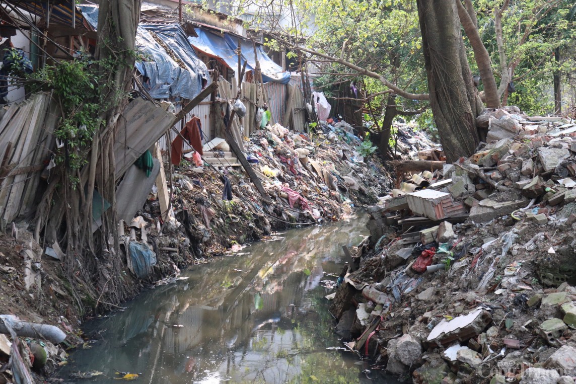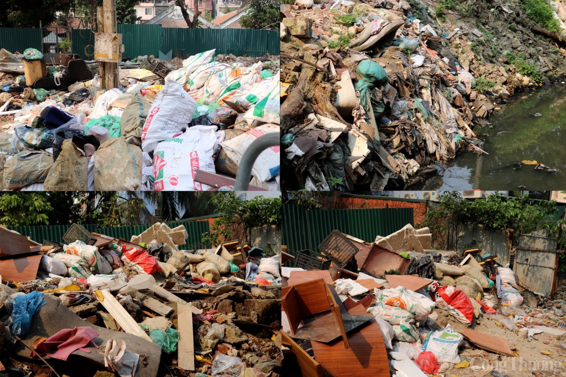 | Ngập tràn rác thải bên bờ mương Kẻ Khế - khu vực giáp ranh giữa phường Đội Cấn và phường Kim Mã, quận Ba Đình, Hà Nội |