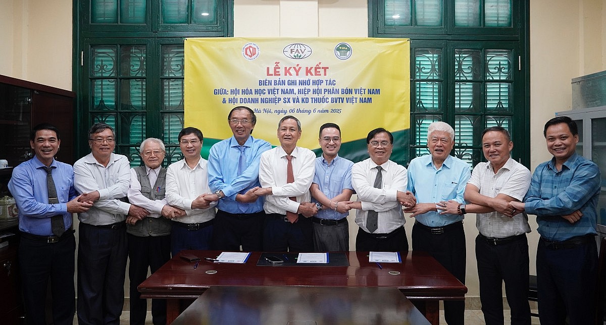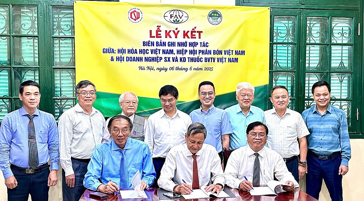 Ngày 6/6, tại Hà Nội, đã diễn ra Lễ ký kết Biên bản ghi nhớ hợp tác (MOU) giữa ba hiệp hội: Hội Hóa học Việt Nam (CSV), Hiệp hội Phân bón Việt Nam (FAV) và Hội Doanh nghiệp sản xuất và kinh doanh thuốc bảo vệ thực vật Việt Nam (VIPA).