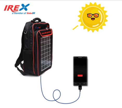 Theo Công ty CP Năng lượng IREX, ba lô pin năng lượng mặt trời có khả năng chuyển đổi năng lượng bức xạ mặt trời thành năng lượng điện dùng để sạc cho các thiết bị điện tử thông dụng như: Smartphone, Iphone, Ipad, sạc dự phòng…