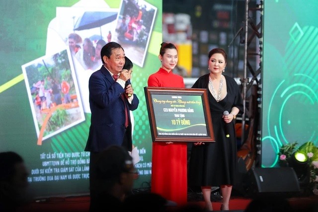 | Gia đình bà Nguyễn Phương Hằng công bố ủng hộ 10 tỷ đồng cho đồng bào lũ lụt miền Bắc. (Ảnh: Trí Thành) |
