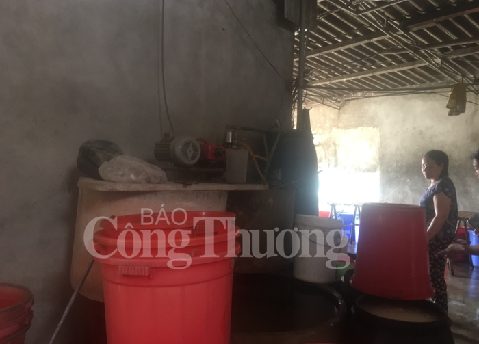 | Cơ sở làm bún của gia đình chị Phan Thị Diễn - xóm 3 Diễn Quảng, toàn bộ nước thải đổ trực tiếp ra mương - bốc mùi hôi thối gây ô nhiễm môi trường |