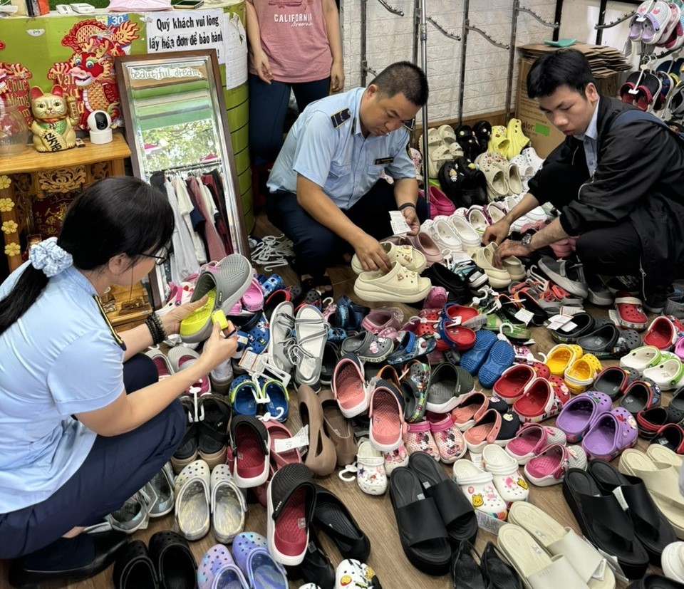 | Đoàn kiểm tra Đội QLTT số 1 thuộc Cục QLTT tỉnh Bà Rịa - Vũng Tàu cùng đại diện sở hữu công nghiệp theo ủy quyền của nhãn hiệu CROCS tại Việt Nam tiến hành kiểm tra đột xuất cửa hàng bán lẻ giày, dép ở TP. Vũng Tàu - (Ảnh: Cục QLTT tỉnh Bà Rịa - Vũng Tàu) |