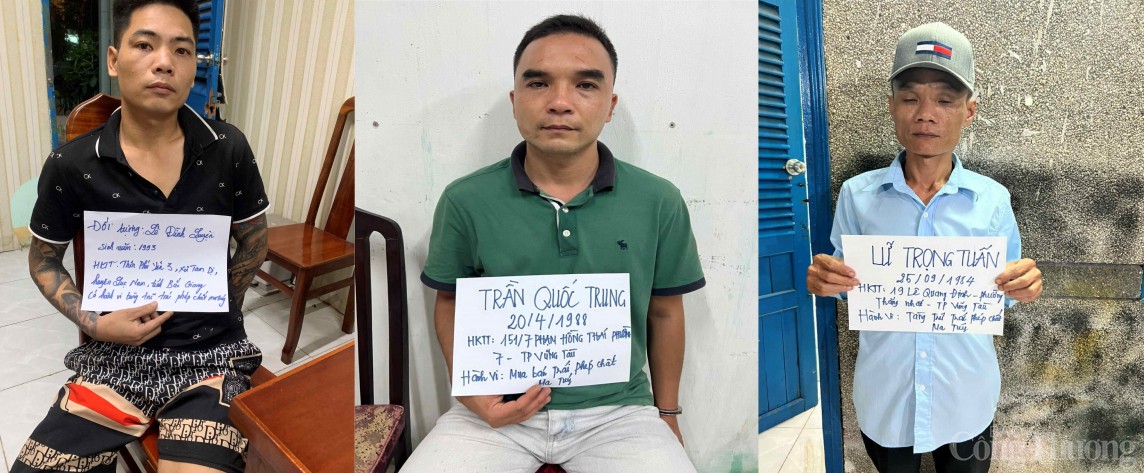 Các đối tượng bị bắt giữ là Lữ Trọng Tuấn (sinh năm 1984, huyện Vĩnh Thành, tỉnh Thanh Hóa); Lê Đình Luyện (sinh năm 1993, huyện Lục Nam, tỉnh Bắc Giang) và Trần Quốc Trung (sinh năm 1988, phường 7, TP. Vũng Tàu).