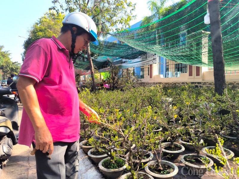 Chú Chợ - người dân ở TP. Vũng Tàu đang tìm cho mình một cây hoa mai ưng ý để trưng trong dịp Tết này. Theo chú, giá hoa Tết năm nay thấp hơn mọi năm, nhưng kinh tế khó khăn, người dân cũng thắt chặt chi tiêu. "Cả năm có cái Tết, chú chọn cây mai nhỏ về để trong nhà trang hoàng nhà cửa đón Tết, gọi là có chút không khí Tết", chú Chợ nói