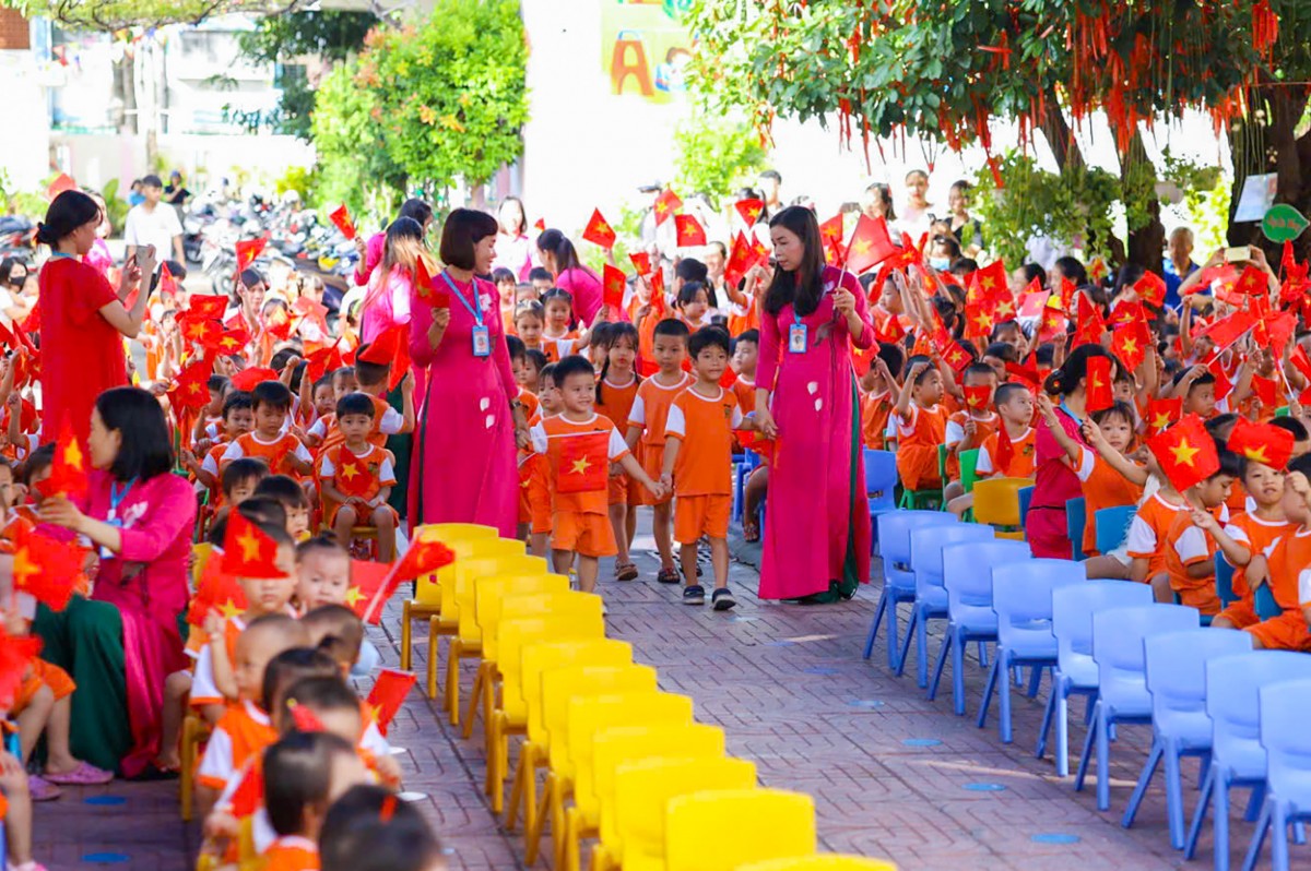 | Niềm vui của cô và trò Trường MN Hương Sen (TP. Vũng Tàu) trong ngày khai giảng năm học mới. Ảnh: CTV |