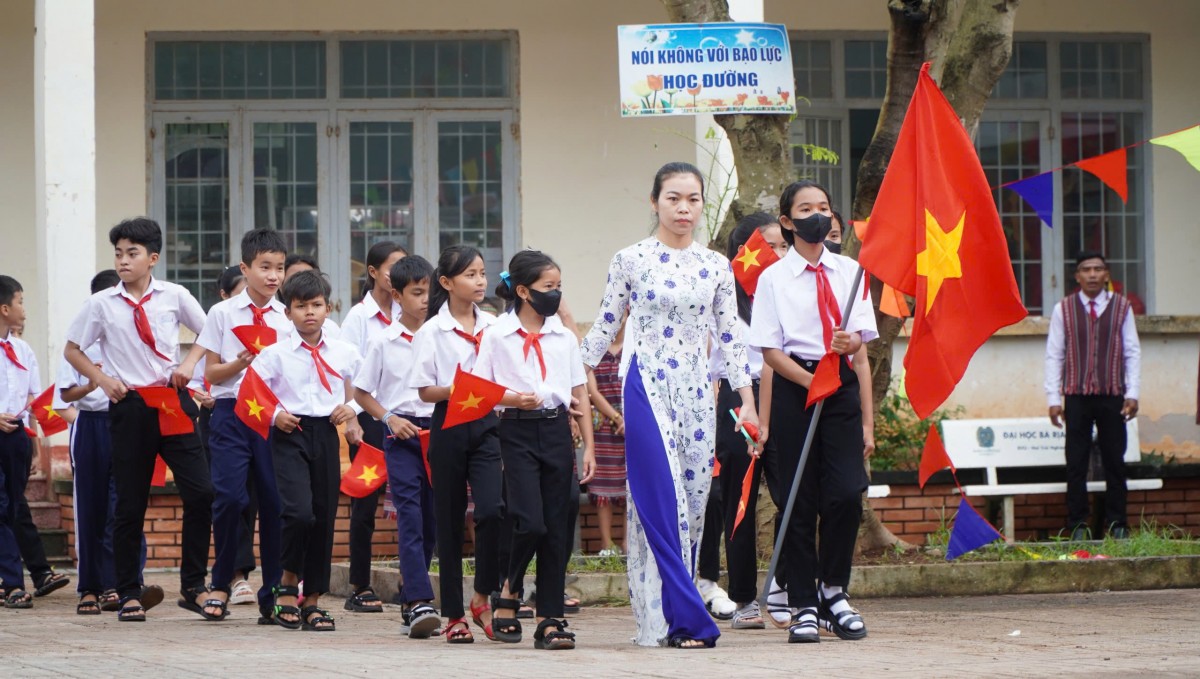 | Cô và trò Trường Phổ thông Dân tộc nội trú tỉnh Bà Rịa - Vũng Tàu chào đón năm học mới. Ảnh: CTV |