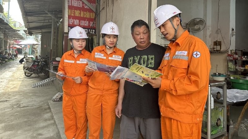 | Công nhân Điện lực TP. Phú Mỹ hướng dẫn người dân sử dụng điện tiết kiệm mùa nắng nóng. Ảnh: PC Phú Mỹ |