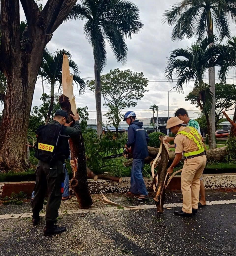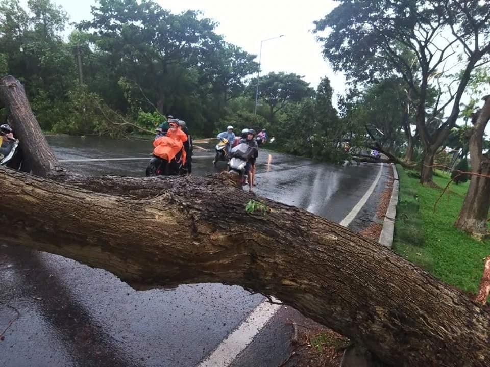 Chiều 27/10, trên địa bàn tỉnh Bà Rịa - Vũng Tàu xuất hiện mưa giông diện rộng kèm gió lớn dẫn đến việc nhiều cây xanh ở dọc quốc lộ 51, đoạn qua cầu Cỏ May (nối TP. Vũng Tàu với TP. Bà Rịa) bị gãy đổ chắn ngang đường.