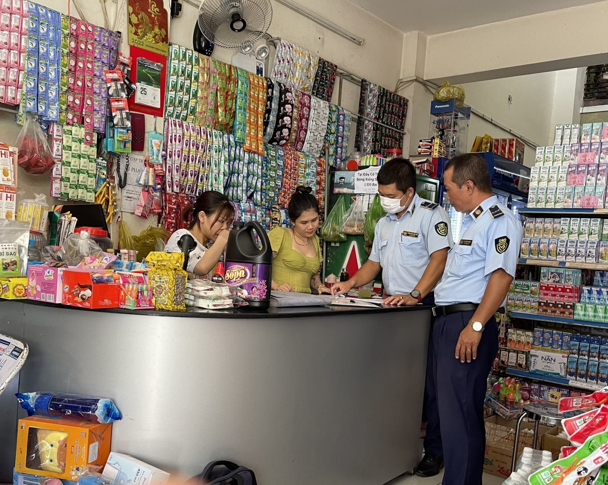 | Lực lượng Quản lý thị trường tỉnh Bà Rịa - Vũng Tàu kiểm tra tại một quán tạp hóa trên địa bàn tỉnh. Ảnh: Cục QLTT Bà Rịa - Vũng Tàu |