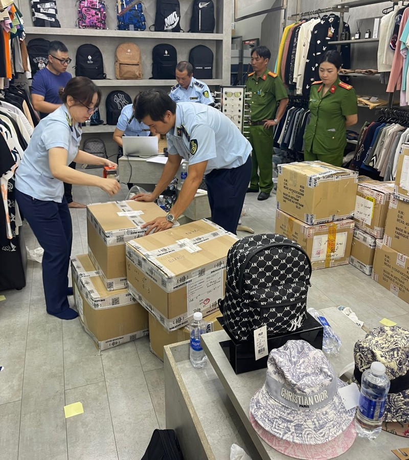 Quá trình kiểm tra hàng hóa đang trưng bày để bán, Đoàn kiểm tra phát hiện 389 đôi giày các loại mang nhãn hiệu NIKE và MLB, có tổng giá trị hơn 67 triệu đồng.