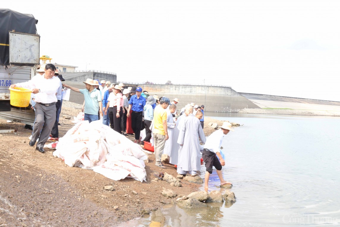 | Hoạt động thả giống tái tạo nguồn lợi thủy sản tại Hồ chứa nước Sông Ray. |