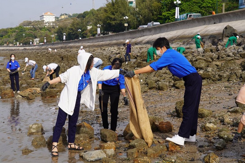| Tại ngày hội lực lượng thanh niên đã triển khai thu gom rác thải, làm sạch bờ biển |