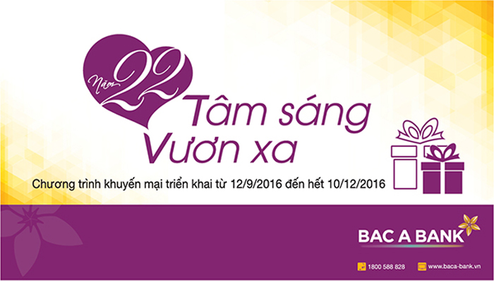 Trong thời gian triển khai chương trình khuyến mại, từ ngày 12/9/2016 đến hết ngày 10/12/2016, khi mở sổ tiết kiệm có kỳ hạn 3 tháng, với số tiền tối thiểu 30.000.000 đồng, khách hàng sẽ nhận ngay phiếu quà tặng từ thương hiệu sữa tươi sạch TH true Milk - một trong những dự án tiêu biểu do Bắc Á bank tư vấn đầu tư. Tổng giá trị quà tặng của chương trình lên tới 2,6 tỷ đồng.