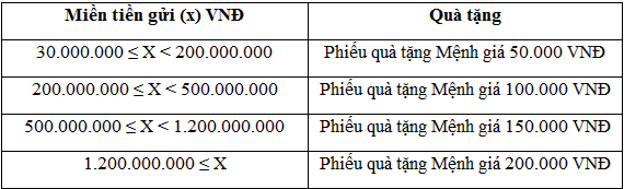 Phiếu quà tặng có giá trị tương ứng với số tiền gửi của khách hàng, cụ thể như sau: