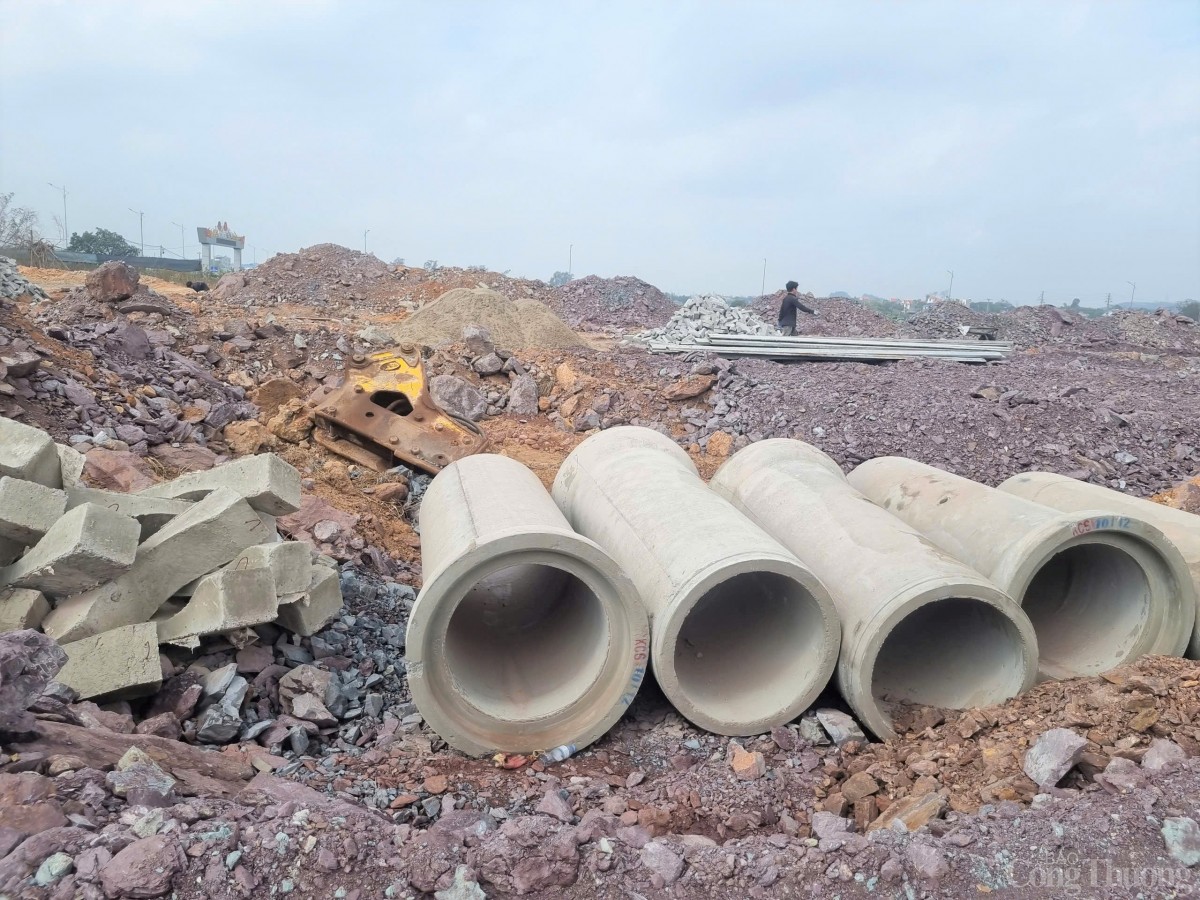 | Những ống cống, vật liệu xây dựng còn ngổn ngang bên trong dự án |