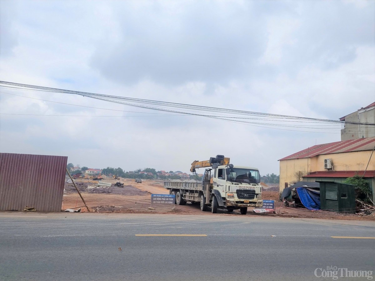 | Nườm nượp xe chở vật liệu xây dựng, đất đá ra vào công trường Dự án Khu dân cư số 3 xã Phương Sơn. |