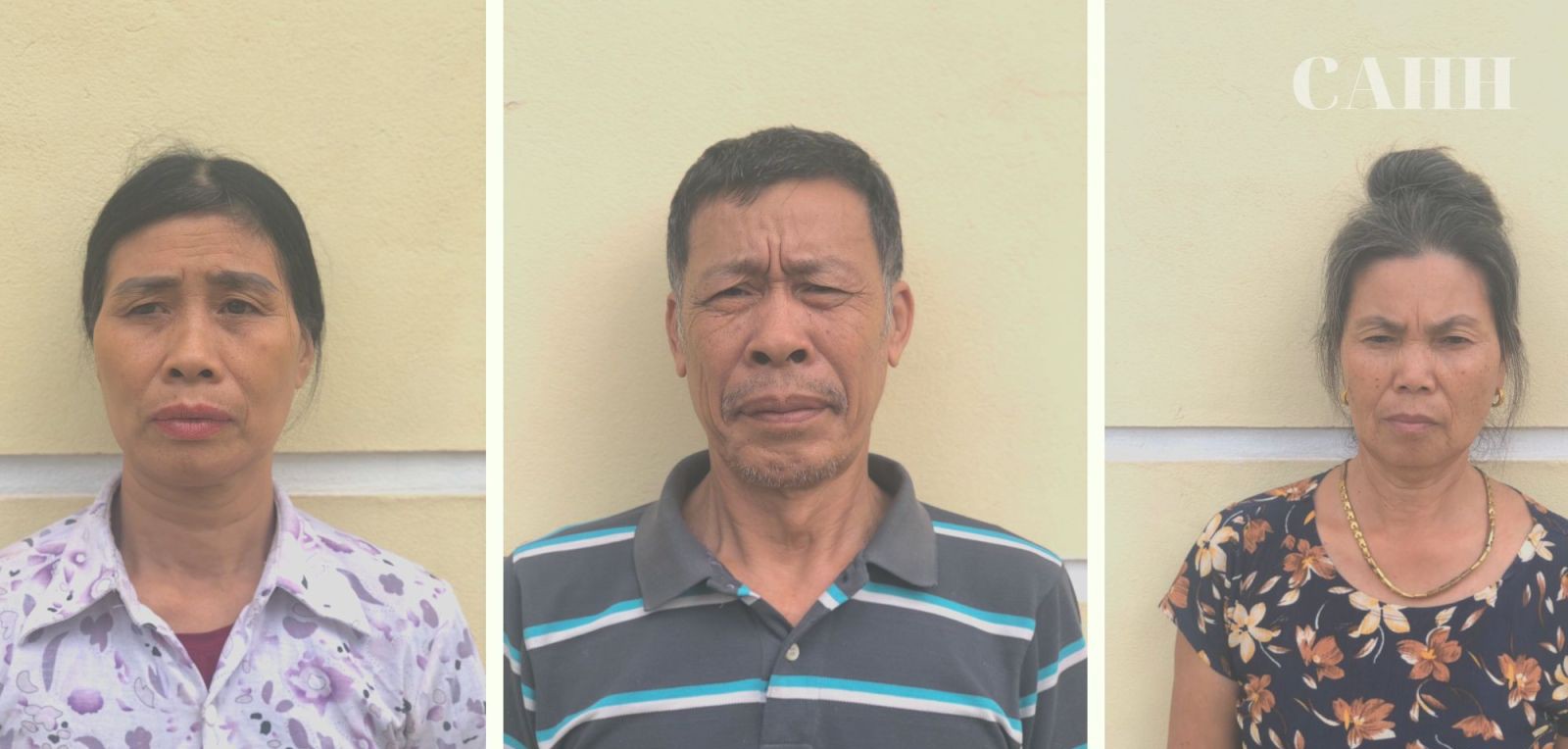 (Từ trái sang phải: Bị can Ngô Thị Hiệp, Nguyễn Văn Chung, Dương Thị Sáu)
