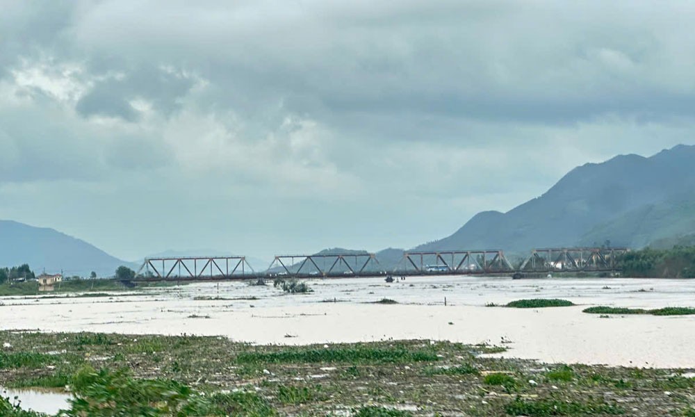 | Mực nước trên sông Lục Nam sáng 9/9. Nguồn ảnh: Báo Bắc Giang |