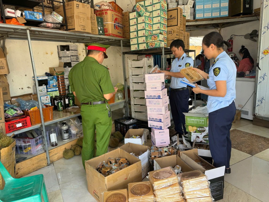 Qua kiểm tra, phát hiện hộ kinh doanh H.T.T đang bày bán hàng hóa có tổng số lượng 1.540 đơn vị sản phẩm thực phẩm do Trung Quốc sản xuất, bao gồm bánh nướng trung thu loại 500g/cái, bánh mỳ loại 90g/cái, bánh mỳ loại 210g/cái, bánh mỳ thỏ loại 58g/cái, bánh quy dừa loại 14g/cái, bánh mỳ cuộn, bánh mochi, rong biển loại 250g/gói.