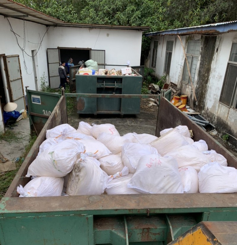 Công ty CP Môi trường xanh Minh Phúc ở tỉnh Hải Dương tiêu hủy tang vật hàng hóa vi phạm theo quy định. Ảnh: BBG |