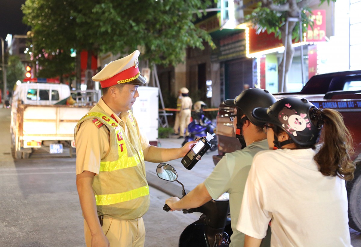 | Lực lượng Cảnh sát giao thông Công an tỉnh Bắc Giang kiểm tra, xử lý vi phạm nồng độ cồn trên địa bàn tỉnh Bắc Giang. Ảnh: Trần Khiêm |