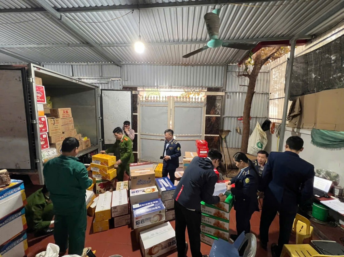 | Lực lượng Quản lý thị trường tỉnh Bắc Giang phối hợp với lực lượng chức năng tỉnh Bắc Giang kiểm tra hàng hóa vi phạm được phát hiện tại hộ kinh doanh Nguyễn Tiến Đạt ở TP Bắc Giang trong dịp Tết 2025. Ảnh: Nguyên Tuấn |