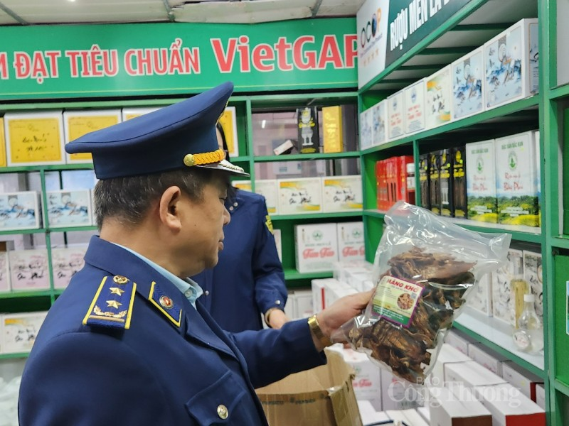 | Lực lượng Quản lý thị trường tập trung kiểm tra những mặt hàng được tiêu thụ nhiều trong dịp Tết Nguyên đán (Ảnh: Thu Hường) |