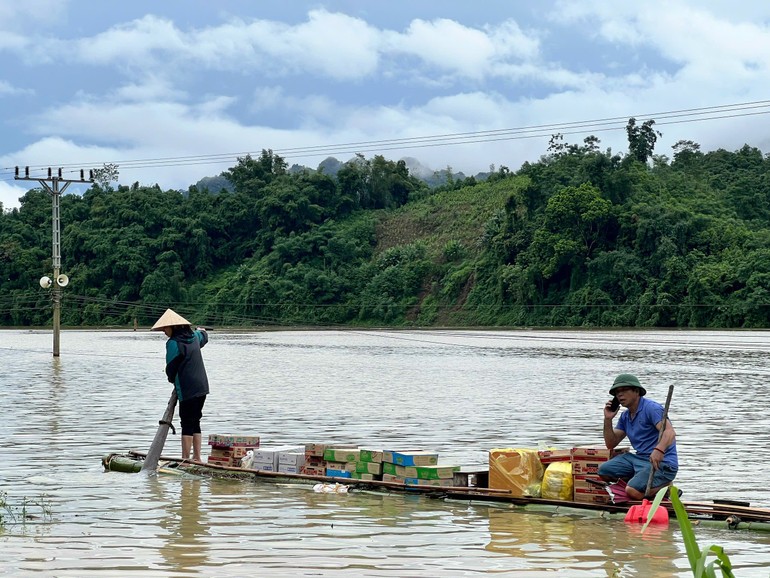 | Hoạt động vận chuyển hàng hóa, nhu yếu phẩm thiết yếu tiếp tế cho người dân vùng lũ của tỉnh Bắc Kạn vẫn đang diễn ra khẩn trương. Ảnh: Đình Hợi |