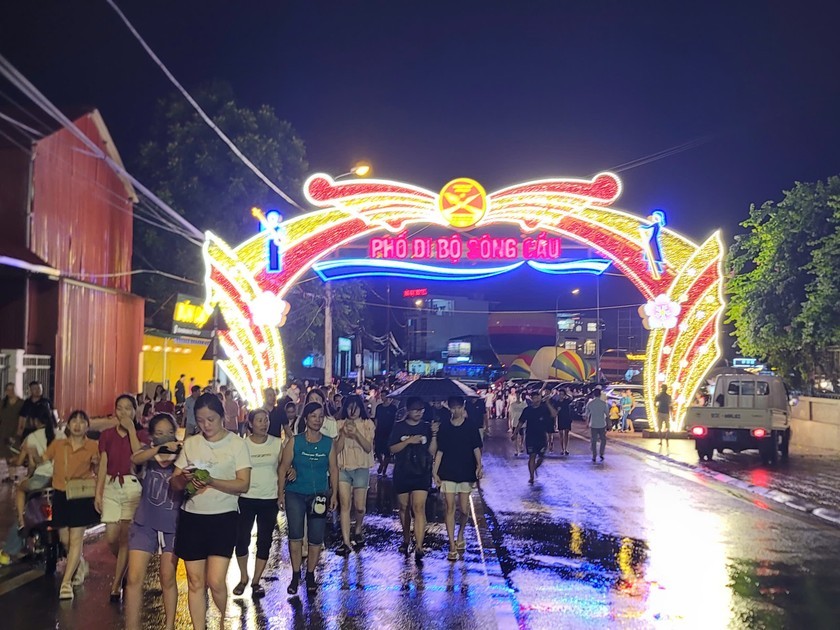| Đông đảo bà con cùng du khách trải nghiệm Phố đi bộ Sông Cầu. Ảnh: Quang Long |