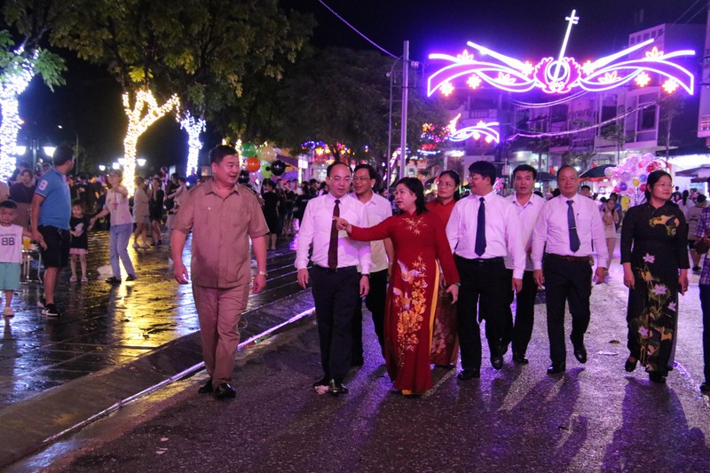 | Sau khi cắt băng khai trương, các đại biểu đã tham quan, trải nghiệm Phố đi bộ Sông Cầu. Ảnh: Quang Long |