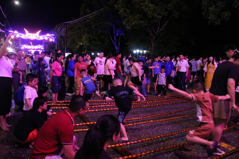 | Du khách và bà con nhân dân trải nghiệm các trò chơi nhảy sạp. Ảnh: Quang Long |