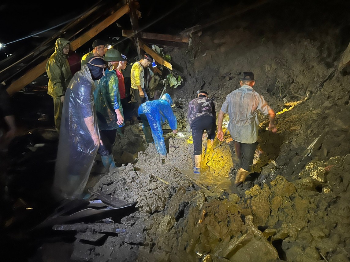 Ngôi nhà bị đất đá vùi lấp hoàn toàn, nên mất nhiều thời gian tìm kiếm các nạn nhân. Hiện đã tìm thấy 4 nạn nhân là: Ông N.C.C (sinh năm 1983), bà H.T.T (sinh năm 1981), chị N.T.M (sinh năm 2006) và 1 cháu bé khoảng một tháng tuổi, chưa khai sinh.