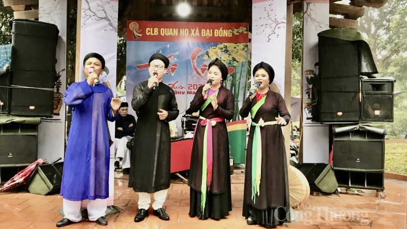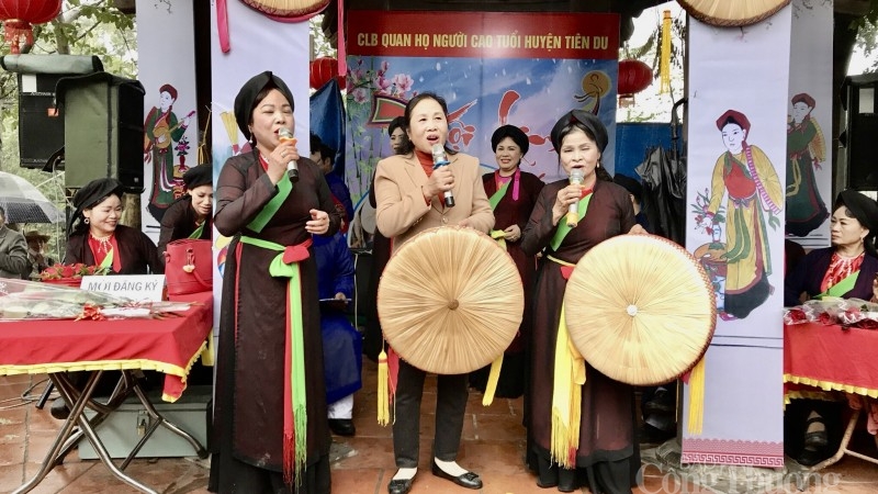 | Các liên anh, liền chị hát giao lưu quan họ trong ngày chính hội hôm nay (3/2) |