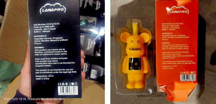 Sau khi tiến hành khám xét, lực lượng chức năng phát hiện 5.000 sản phẩm thuốc lá điện tử nhãn hiệu LANAPRO do Trung Quốc sản xuất và 11 can dung dịch hóa chất (08 can loại 25kg/can và 03 can loại 5kg/can) do Trung Quốc sản xuất. Tổng trị giá hàng hóa vi phạm ước tính 530.000.000 đồng.