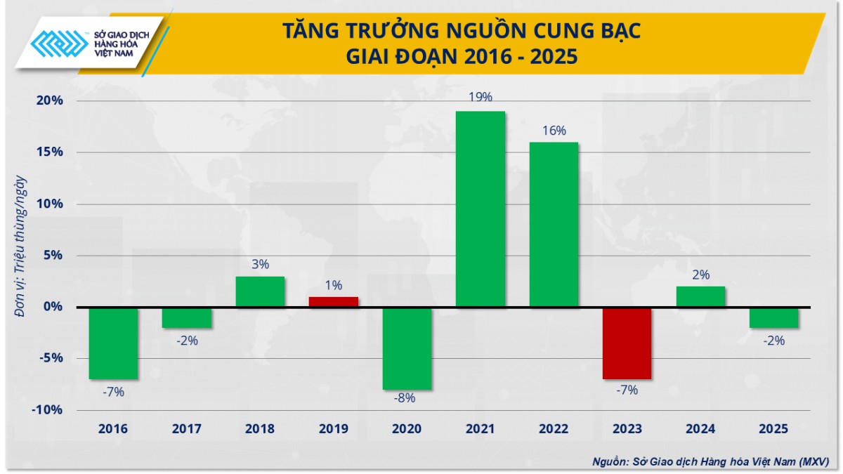 | Tăng trưởng nguồn cung bạc giai đoạn 2016 - 2025 |