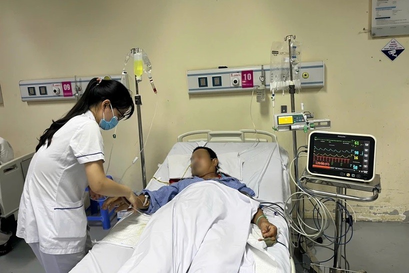 Một trong những trường hợp nặng đêm qua, được các bác sĩ Bệnh viện E tiếp cận là người bệnh N.V.S. (ở Hà Nội) nhập viện trong tình trạng đau đầu, đau vai trái… được chẩn đoán chấn thương sọ não vỡ xương trán, máu tụ ngoài màng cứng.