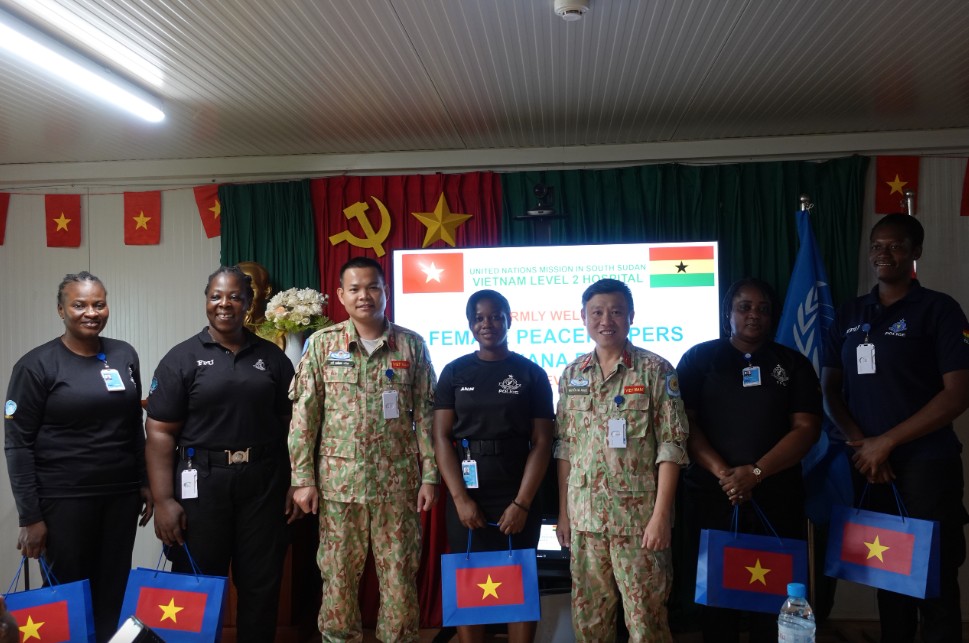 Ngày 19/8, thông tin từ Bệnh viện dã chiến cấp 2 số 5 (BVDC2.5) cho biết, nhân kỷ niệm Ngày thành lập lực lượng Công an nhân dân, bệnh viện đã tổ chức khám sức khỏe miễn phí cho 30 đồng chí nữ, thuộc đơn vị cảnh sát Ghana (Ghana FPU) tại phái bộ UNMISS, phân khu Bentin, Nam Sudan.