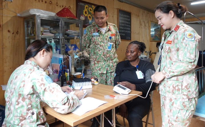 | Bệnh viện dã chiến của Việt Nam khám sức khỏe cho nữ cảnh sát Ghana đang thực thi nhiệm vụ gìn giữ hòa bình Liên hiệp quốc tại Nam Sudan. Ảnh: BVDC 2.5 |