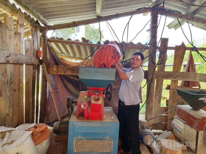 Có điện lưới quốc gia, anh Lầu Văn Thắng đã đầu tư thêm máy sát để phục vụ bà con trong thôn. Ảnh: Phạm Tiệp