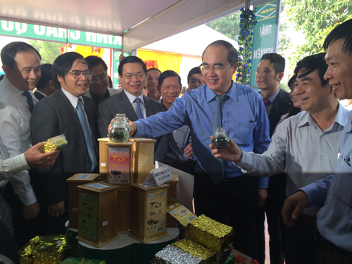 Chủ tịch Ủy ban TW Mặt trận Tổ quốc Việt Nam Nguyễn Thiện Nhân và Bộ trưởng Bộ Công Thương Vũ Huy Hoàng đánh giá cao các sản phẩm của bà con MN & HĐ tại Hội chợ tự hào hàng Việt Nam chất lượng cao.