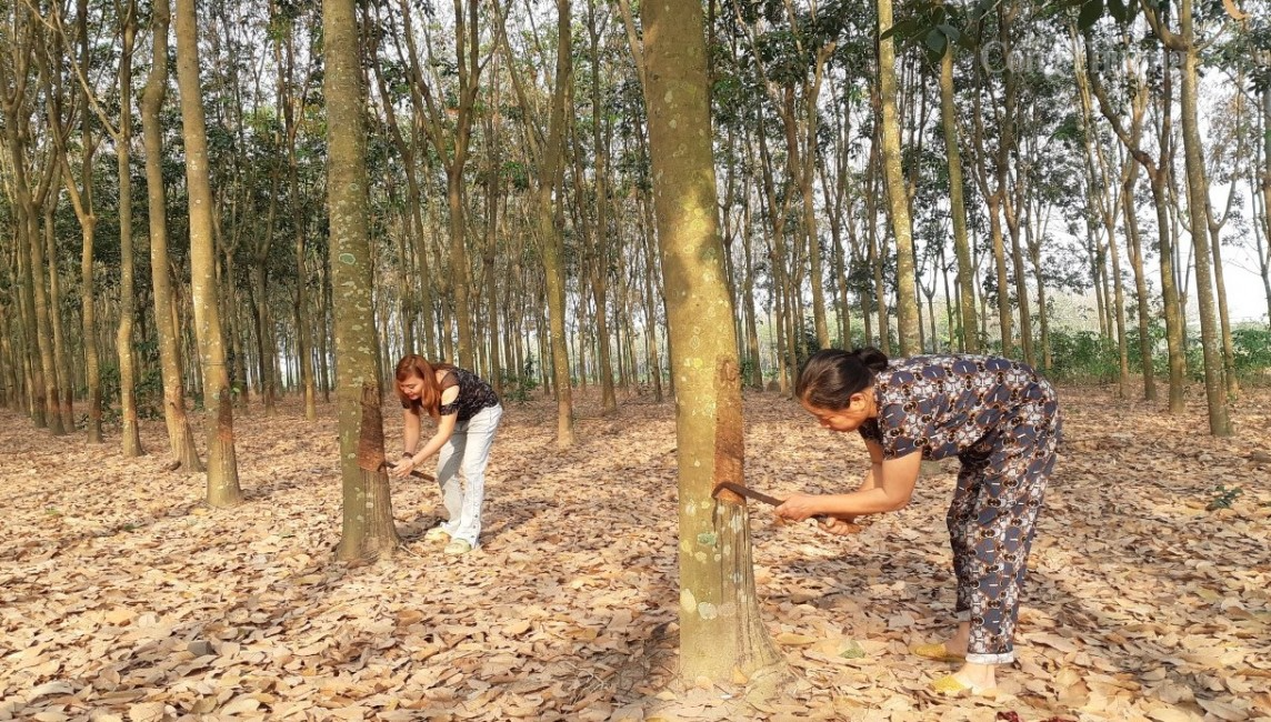 | Vườn cao su của đồng bào Sán Chay ở vùng đất kinh tế mới xã Tam Lập, huyện Phú Giáo, tỉnh Bình Dương đã cho thu hoạch |