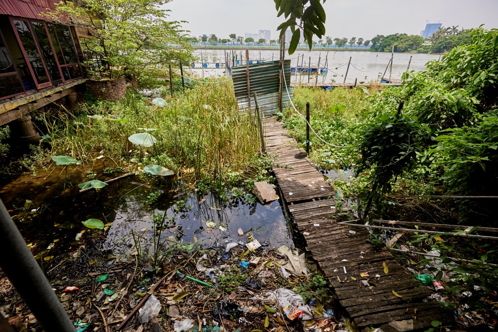 Mặc dù nằm trong không gian văn hóa Hồ Tây nhưng không khó để thấy những cảnh tượng túp liều lụp xụp, bãi rác ngổn ngang, rác thải bủa vây bờ hồ và xâm lấn mặt nước…