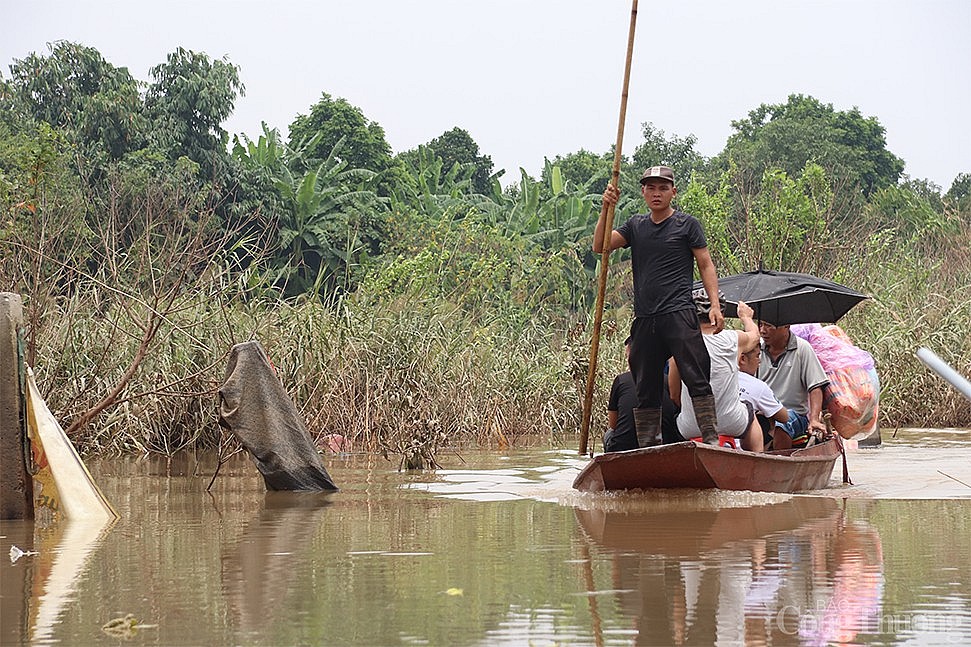 Những trận mưa lớn liên tiếp, cộng thêm việc Nhà máy thủy điện Hòa Bình xả lũ, những ngày gần đây, mực nước sông Hồng dâng cao, nhiều địa điểm ngập lụt khiến cuộc sống người dân thuộc lưu vực sông bị đảo lộn. Thay vì di chuyển bằng phương tiện giao thông thường ngày, người dân ở bãi giữa sông Hồng phải ngồi thuyền đi học, đi làm...