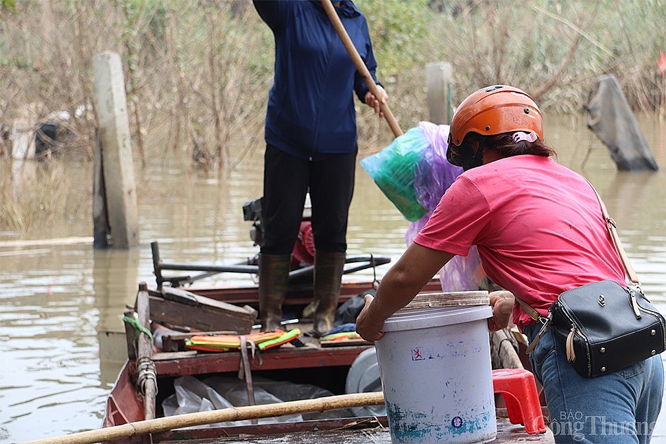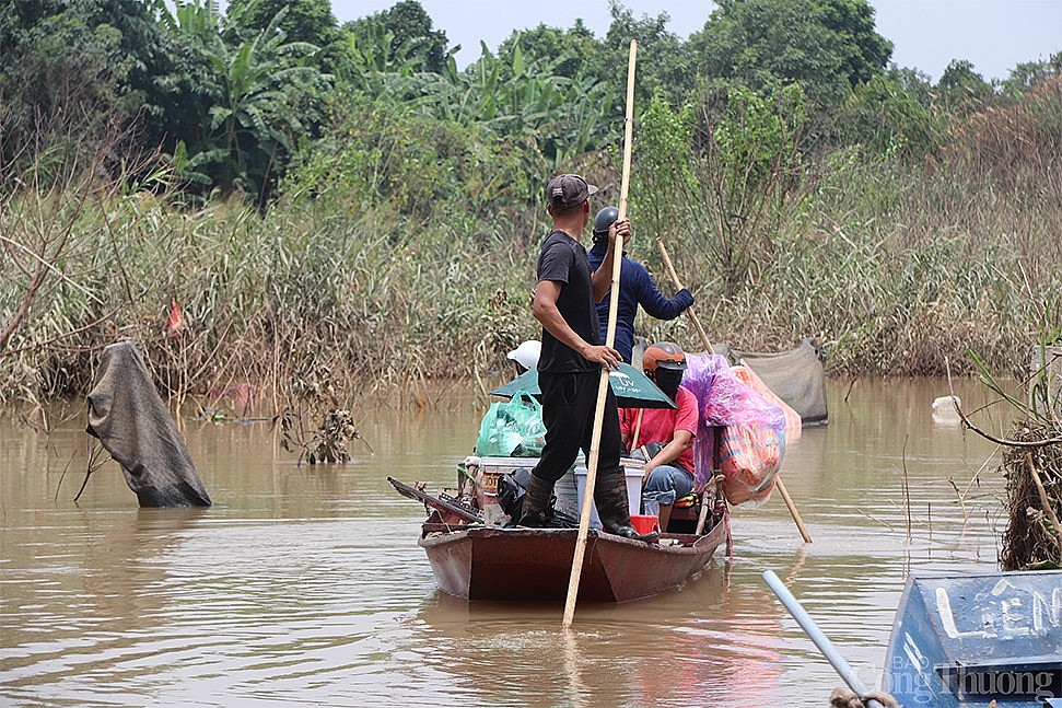 | Những ngày qua người dân ra vào bãi giữa phải đi bằng thuyền, cuộc sống sinh hoạt bị đảo lộn. |
