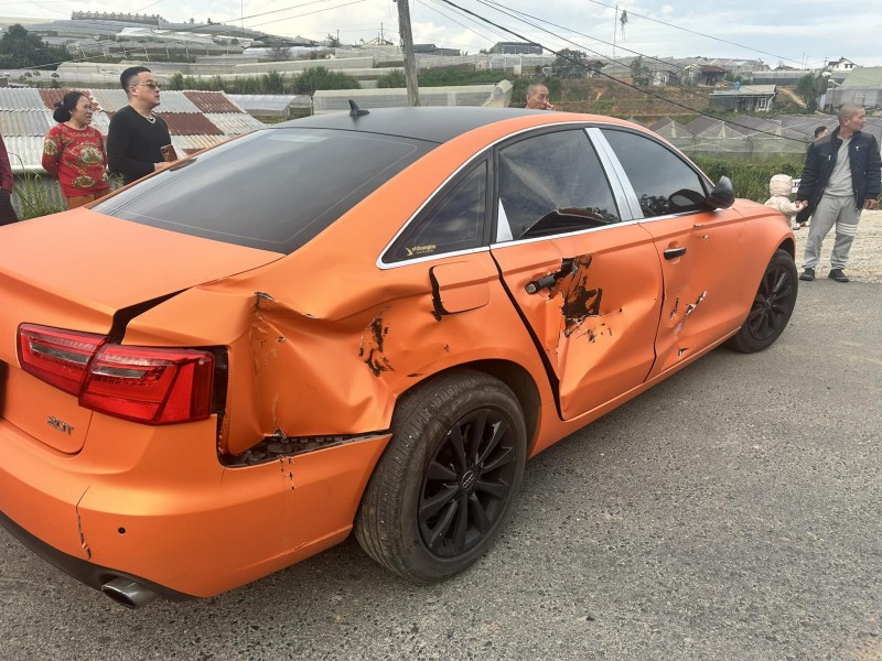 Hậu quả, chiếc xe ô tô hiệu Audi của Cao Thái Sơn bị hư hỏng nặng ở phần thân xe.
